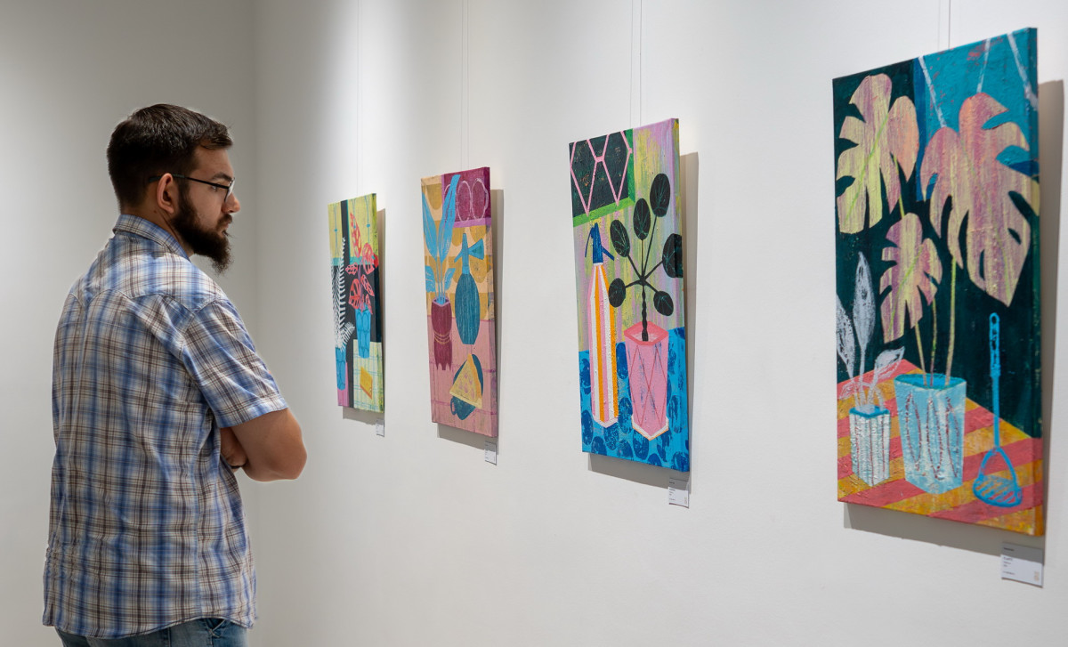 Németh Ábel képzőművész a csendéletfestészet új arcát mutatja be a válogatásban. A műfaj lehetővé teszi számára, hogy a kompozícióval, a perspektívával, a fényekkel, valamint az egyes tárgyak textúrájával és egyedi színvilágával kísérletezzen. A festészetében megfér a tengericsillag egy szobanövény otthonos környezetében, a fekete-fehér csíkos kaktusz a kék kockás abroszon, valamint a zöld lakótelepi ház a vöröslő égbolt alatt. A képzőművész mindennapi tárgyakat emel művészi magaslatokba, ám nem elsősorban a mulandóságuk végett, hanem mint kulturális szimbólumoknak ad új életet és értelmet. A Pepsi-doboz, a Fanta-flakon, a Balaton-szelet, a cigaretta, illetve a szobanövények mind-mind a posztmodern életünk lenyomatai, így ezek ábrázolásai a jelenről és ezáltal rólunk is mesélnek.